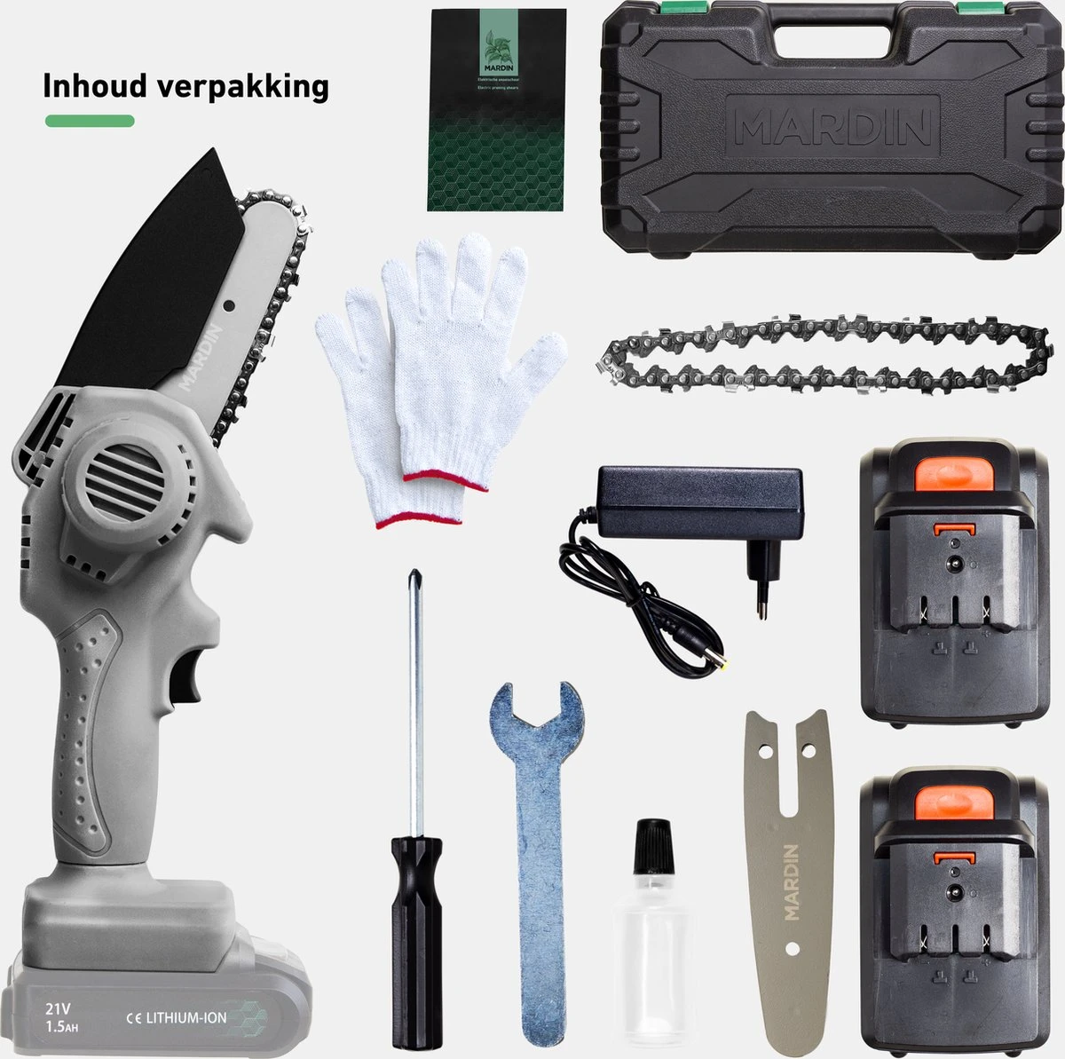 Mardin Mini Kettingzaag – Snoeizaag – Kettingzaag – Kettingzaag Electrisch Met 2 Accu – Inclusief Koffer – 1 Extra Accu – Grijs