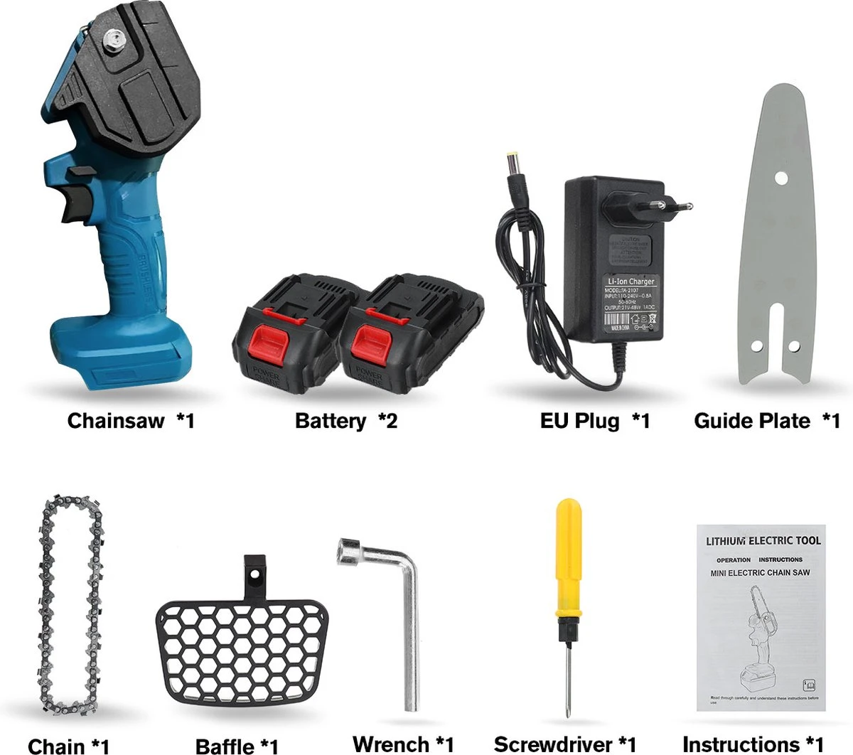 - Batterij: 2 * lithiumbatterij, 18V, 10000mAh